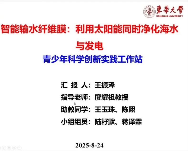 为进一步做好上海市青少年科学创新实践工作站建设管理工作,提升工作站凝聚力和影响力,在上海上海市教育委员会、上海市科学技术委员会指导下,2025年6月14日,依托我室建设的东华大学先进纤维与低维材料青少年科学创新实践工作站(以下简称工作站)开班及选题指导成功举办。上海市教育委员会副主任王浩,同济大学副校长、中国工程院院士童小华,上海市教育学会会长尹后庆,中国工程院院士、同济大学土木工程学院教授朱合华等出席了上海市青少年科学创新实践工作站集中开班仪式。 ![]() ![]() 6月14日上午,工作站举行了选题指导和安全教育等,活动由工作站副站长李莉莉主持,线上播放了工作站的相关视频,展现了往届学员在实践中完成的多项原创性研究课题,激发了新学员对科研探索的期待与热情。 我室高级实验师郑伟龙作《道路千万条,安全第一条》主题培训,从科研伦理、实验室安全、数据管理、心理调适等多个维度讲解了学生科研实践中可能面临的风险与注意事项。他以案例方式介绍了科研活动中的常见误区,并就如何合理安排时间、保障身心健康等方面提出建议。 ![]() ![]() ![]() 线下合影 2025年8月24日,工作站中期答辩会顺利举办,来自松江二中、晋元高级中学、行知实验中学等多所中学的工作站学员被分为四个小组依次进行线上答辩。 ![]() ![]() ![]() 2025年上海市青少年科学创新实践工作站中期答辩会线上云合影 ![]() ![]() ![]() ![]() ![]() 2025年9月20日,工作站结题答辩圆满完成。本次答辩以“近距离科研实践”的形式开展,让同学们深度体验了完整的研究历程。