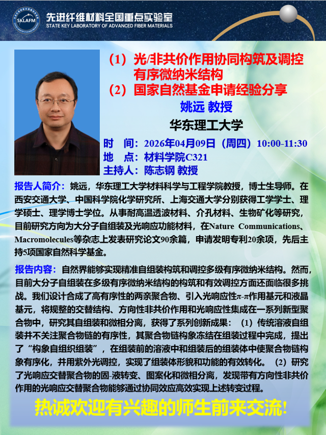 姚远-华东理工大学-光/非共价作用协同构筑及调控有序微纳米结构,国家自然基金申请经验分享