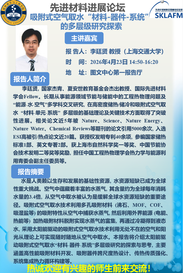 李廷贤--上海交通大学--吸附式空气取水“材料-器件-系统”的多层级研究探索