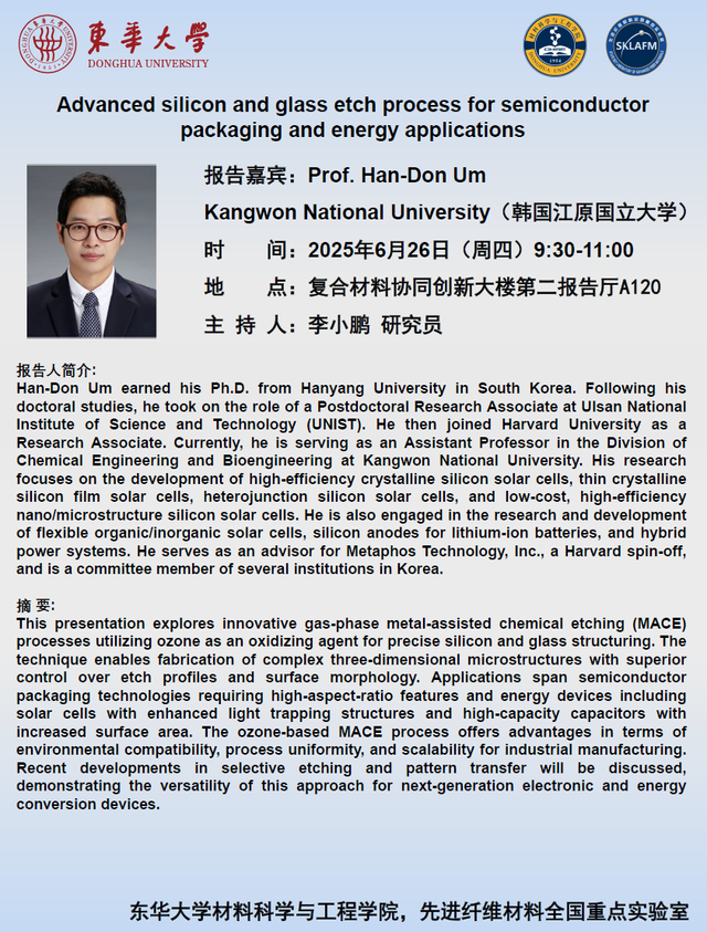 Han-Don Um--Kangwon National University(韩国江原国立大学)--Advanced silicon and glass etch process for semiconductorpackaging and energy applications